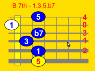 Usually any V Type chord can be a Major or a 7th chord, however for a beginner a B Major chord can be hard so substitute with a B7 instead. See Diagram below
