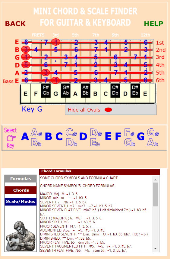 Simple Easy to Use Mini Guitar Chord and Scale Finder in any Key
